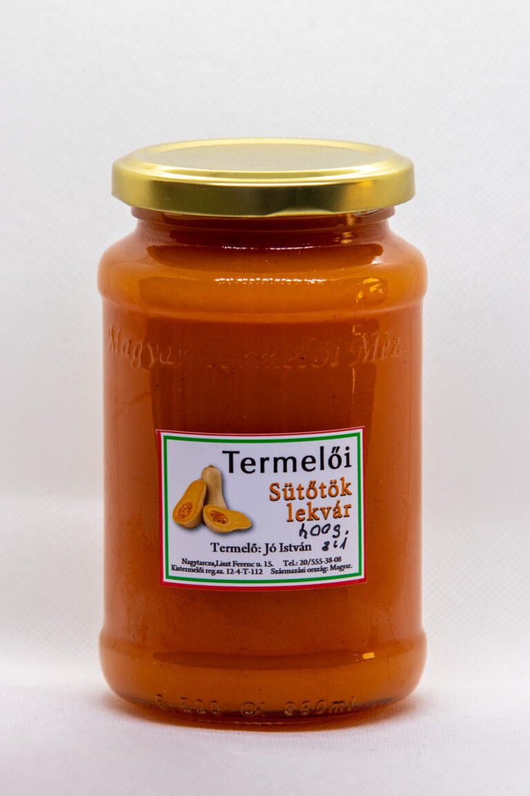 A sütőtök lekvár a készlet erejéig elérhető. Selymes édes íze sokakat meglep. Kiváló alapanyag sütemények készítéséhez de kaláccsal vagy palacsintával is kitűnő.